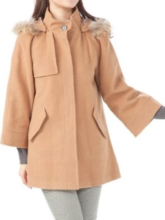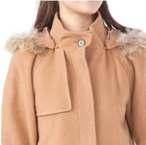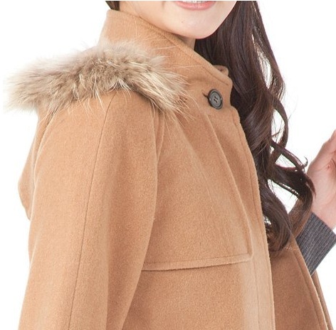 ファーフード付きラグランウールコート